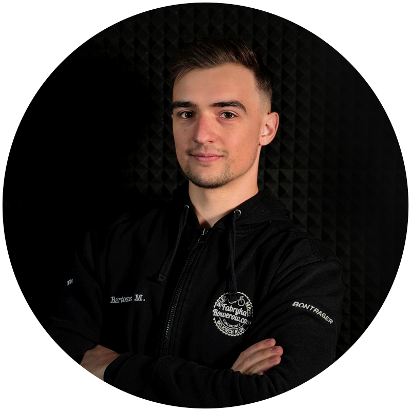 Przygodę z rowerami zacząłem w wieku 14 lat w klubie kolarskim w Częstochowie jako zawodnik szosowy. Liczne sukcesy w tej dyscyplinie pchały mnie do rozwijania siebie i z czasem kolarstwo stało się moją pasją. Po zakończeniu mojej przygody jako zawodnik, rozpocząłem pracę w serwisie rowerowym na stanowisku mechanika. W Fabryce Rowerów rozpocząłem pracę w 2025 roku, gdzie zajmuję się obsługą klienta naszego serwisu.