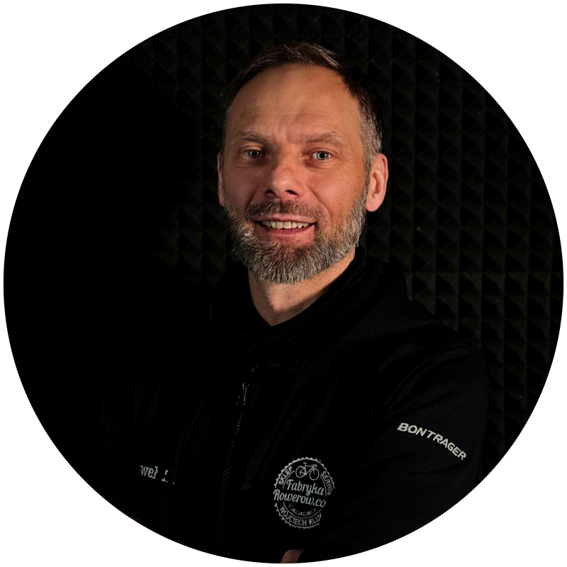 Z branżą rowerową jestem związany już 30 lat i mogę zdecydowane powiedzieć, że jest to moja pasja. W Fabryce Rowerów pracuję od 1.5 roku jako mechanik, czyli na stanowisku, które piastuję od zawsze. Nie ma dziedziny w mechanice rowerowej, z którą nie miałbym styczności. Najbliższe mi są rowery szosowe i XC.