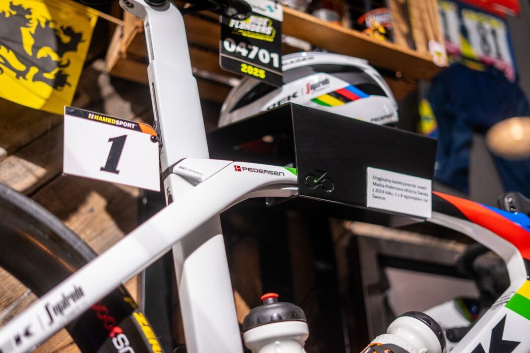 - Madone z częściowo białym malowaniem – rower, który Wojtek sprzedał, aby otworzyć pierwszą Fabrykę Rowerów, a następnie odkupił