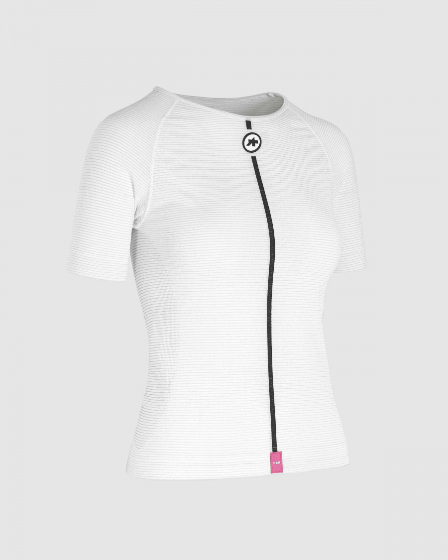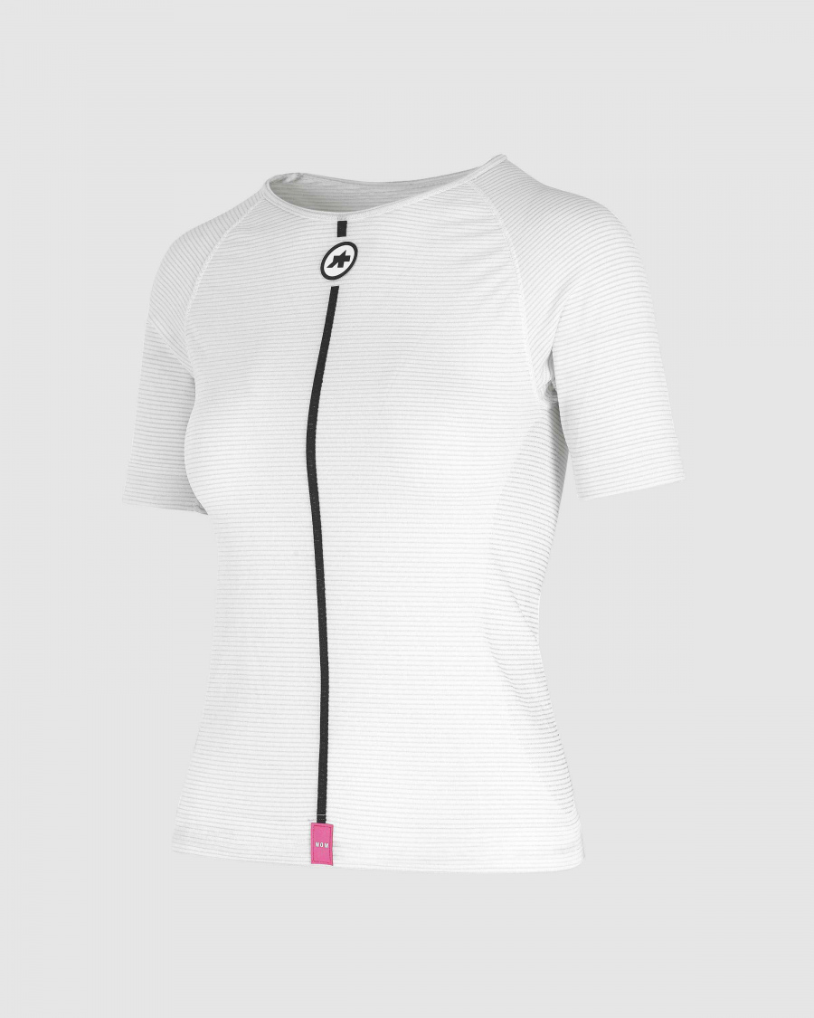 Damski podkoszulek rowerowy ASSOS Summer SS Skin Layer to ultralekka warstwa bazowa z krótkim rękawem o kobiecym kroju i bezszwowej konstrukcji. Wykonana została z przędzy z włókna węglowego i polipropylenowego, dzięki czemu zapewnia suchość i chłód podczas przejażdżek w najgorętsze dni w roku. Pomaga utrzymać stałą temperaturę ciała, a jednocześnie skutecznie odprowadza wilgoć. Delikatna, niemal niewidoczna pod koszulką rowerową. Marka ASSOS stale dopracowuje jej krój i skład, aby zapewnić Ci wyjątkowy komfort podczas treningów w najcieplejsze dni.