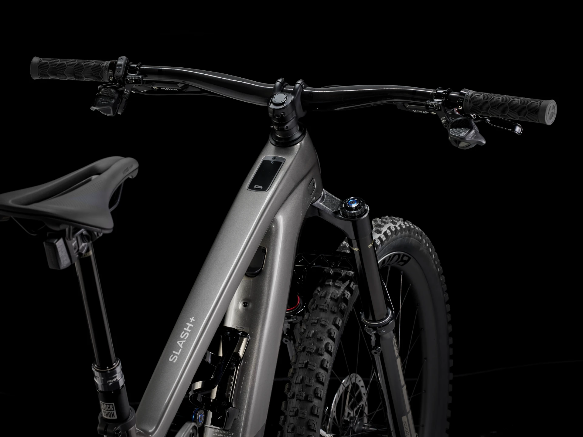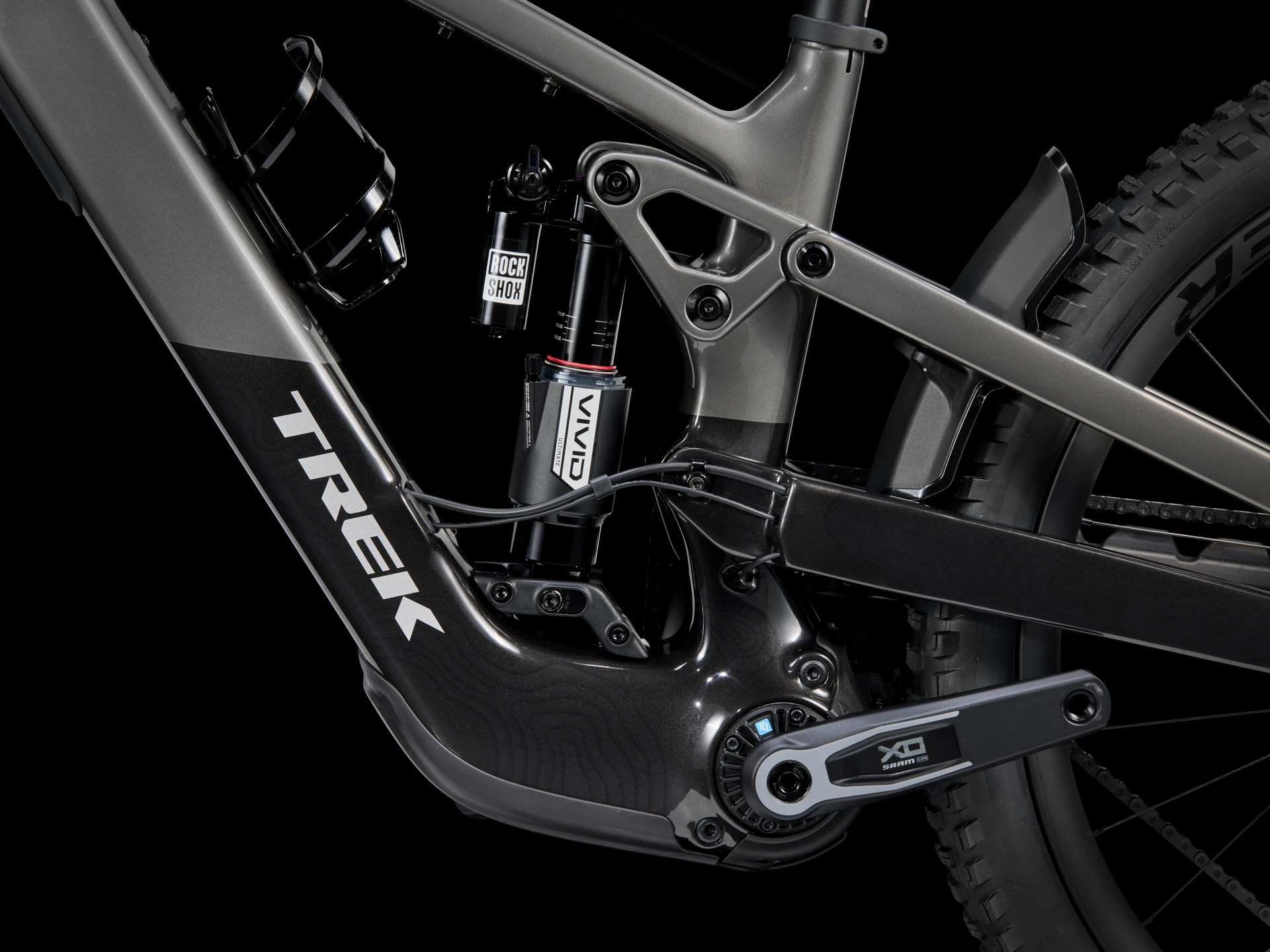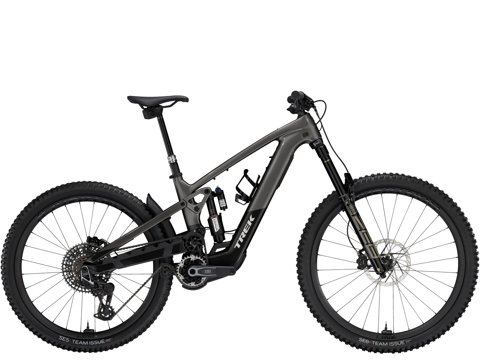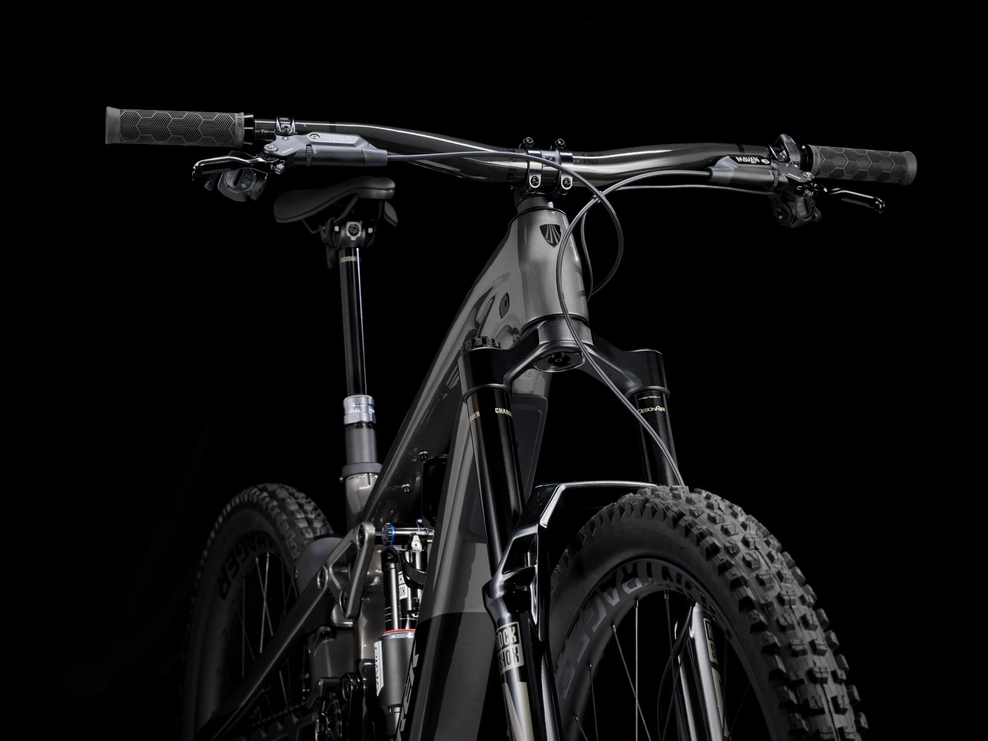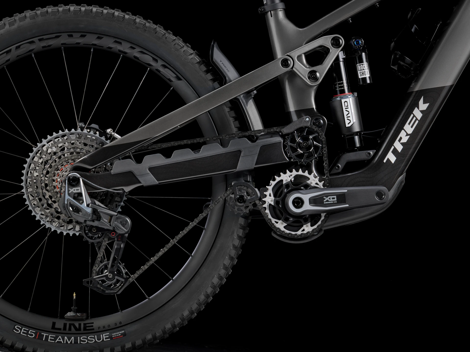 Rama z włókna węglowego OCLV Mountain z zawieszeniem z wysokim punktem obrotu i cichym a jednocześnie mocnym silnikiem TQ HPR50 (50 Nm, 250 W) z akumulatorem 580 Wh, a także dodatkowym miejscem na schowek wewnętrzny. Skok 170 mm z przodu i z tyłu zapewniają widelec RockShox ZEB Ultimate Deluxe ze sprężyną DebonAir i tłumieniem Charger 3.1 RC2 oraz damper RockShox Vivid Ultimate. Koła z włókna węglowego OCLV Mountain Bontrager Line Pro 30 (29" z przodu, 27,5" z tyłu) do rozprawienia się z trudnym terenem, sztyca regulowana RockShox Reverb, hamulce 4-tłoczkowe SRAM Maven Silver oraz sterowany bezprzewodowo, mocowany bezpośrednio napęd SRAM X0 AXS.