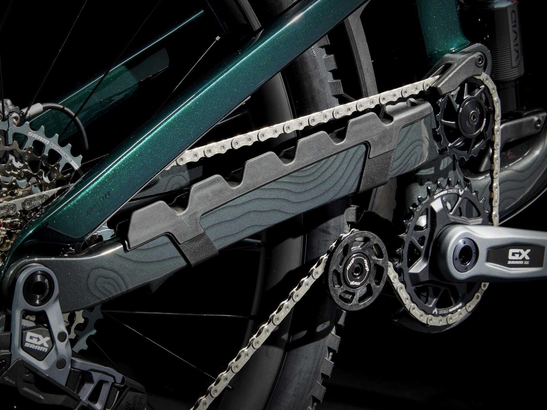 1. Zawieszenie z wysokim punktem obrotu daje Ci niesamowitą kontrolę na przeraźliwie stromych zjazdach, podczas gdy precyzyjnie dopasowany anti-squat i kółka przerzutki oversized niesamowicie zwiększają wydajność pedałowania