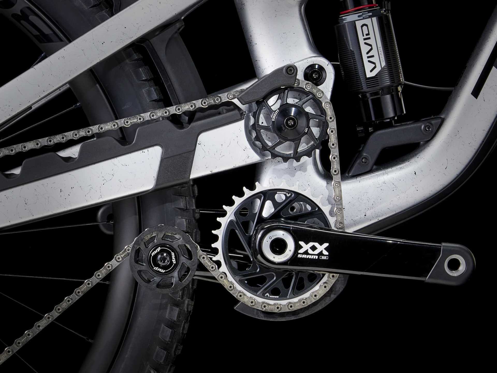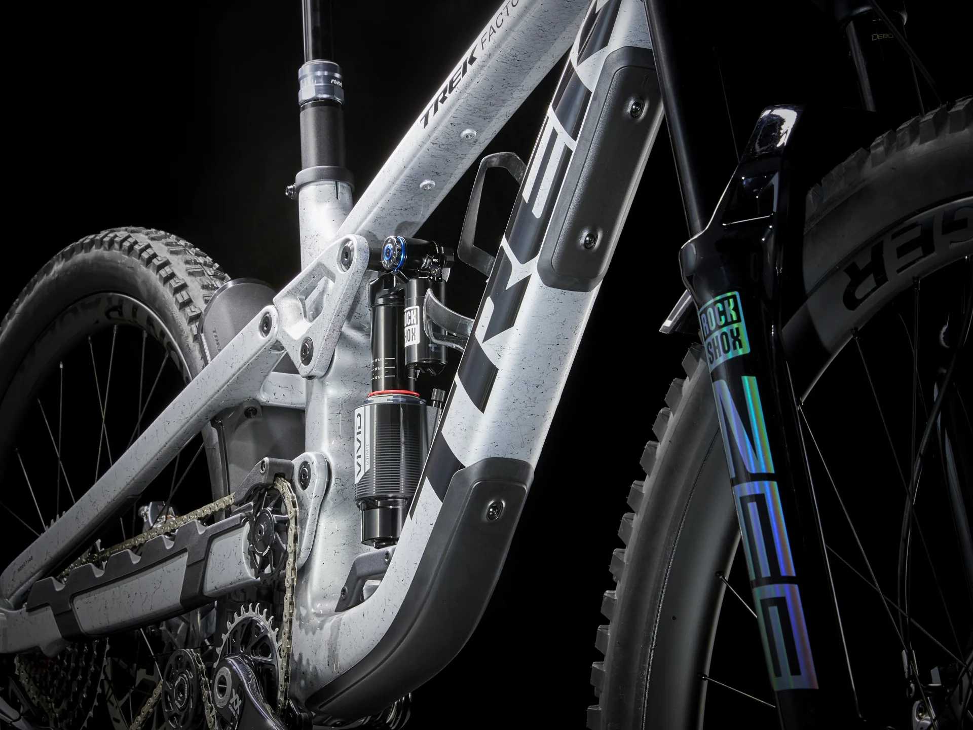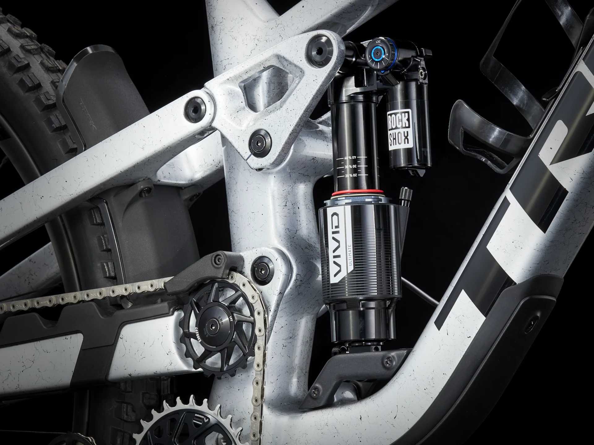 Rama z włókna węglowego OCLV Mountain z zawieszeniem z wysokim punktem obrotu, a także dodatkowym miejscem na przechowywanie wewnętrzne. Przedni i tylny skok 170 mm z widelcem RockShox ZEB Select+ ze sprężyną DebonAir i damperem Charger 3 RC2 oraz amortyzatorem RockShox Super Deluxe Select+. Napęd SRAM XX Eagle AXS Transmission zapewnia bezprzewodowe przerzucanie, które zawsze działa płynnie niezależnie od obciążenia, a regulowana sztyca Bontrager Line Dropper zapewnia przestrzeń do zmiany pozycji. Mieszane koła karbonowe Bontrager Line Elite 30 do zastosowań bezdętkowych, 29-calowe z przodu i 27,5-calowe z tyłu, z piastą Rapid Drive zapewniają wszechstronność w każdych warunkach.