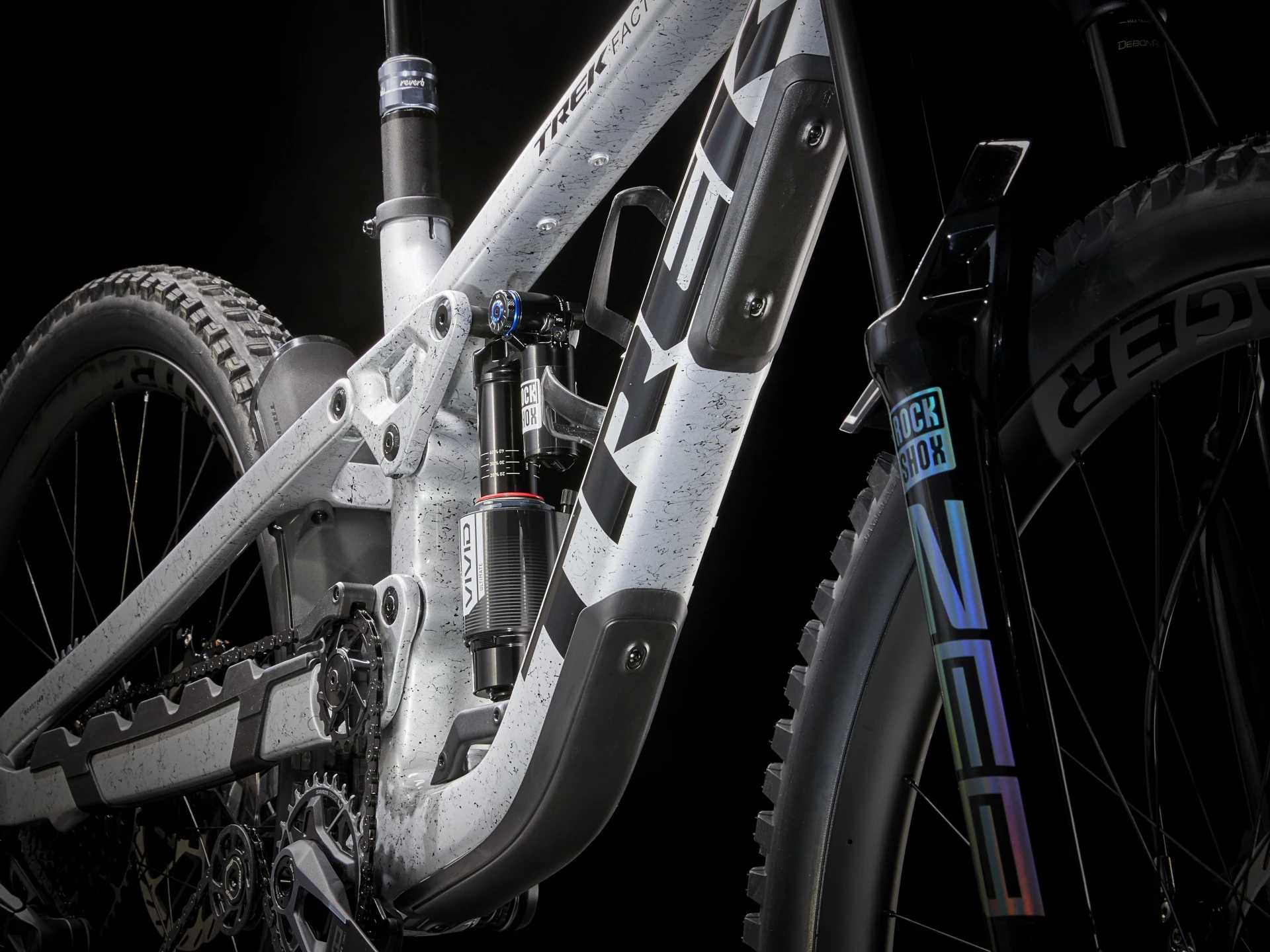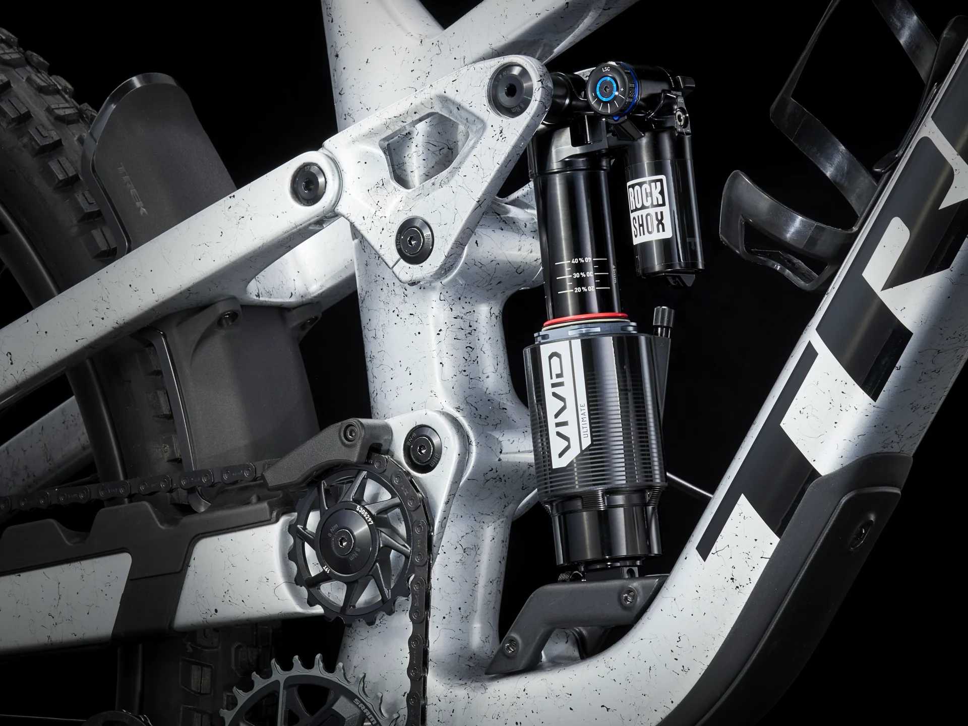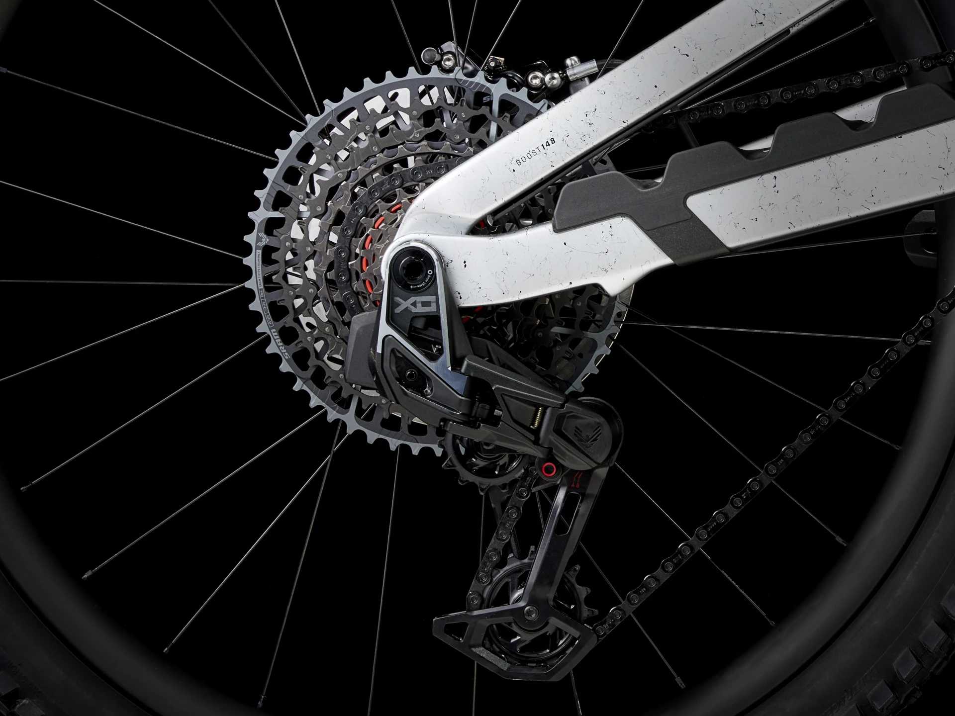 Rama z włókna węglowego OCLV Mountain z zawieszeniem z wysokim punktem obrotu, a także dodatkowym miejscem na przechowywanie wewnętrzne. Przedni i tylny skok 170 mm z widelcem RockShox ZEB Select+ ze sprężyną DebonAir i damperem Charger 3 RC2 oraz amortyzatorem RockShox Super Deluxe Select+. Napęd SRAM X0 Eagle AXS Transmission zapewnia bezprzewodowe przerzucanie, które zawsze działa płynnie niezależnie od obciążenia, a regulowana sztyca Bontrager Line Dropper zapewnia przestrzeń do zmiany pozycji na rowerze. Mieszane koła karbonowe Bontrager Line Elite 30 do zastosowań bezdętkowych, 29-calowe z przodu i 27,5-calowe z tyłu, z piastą Rapid Drive zapewniają wszechstronność w każdych warunkach.
