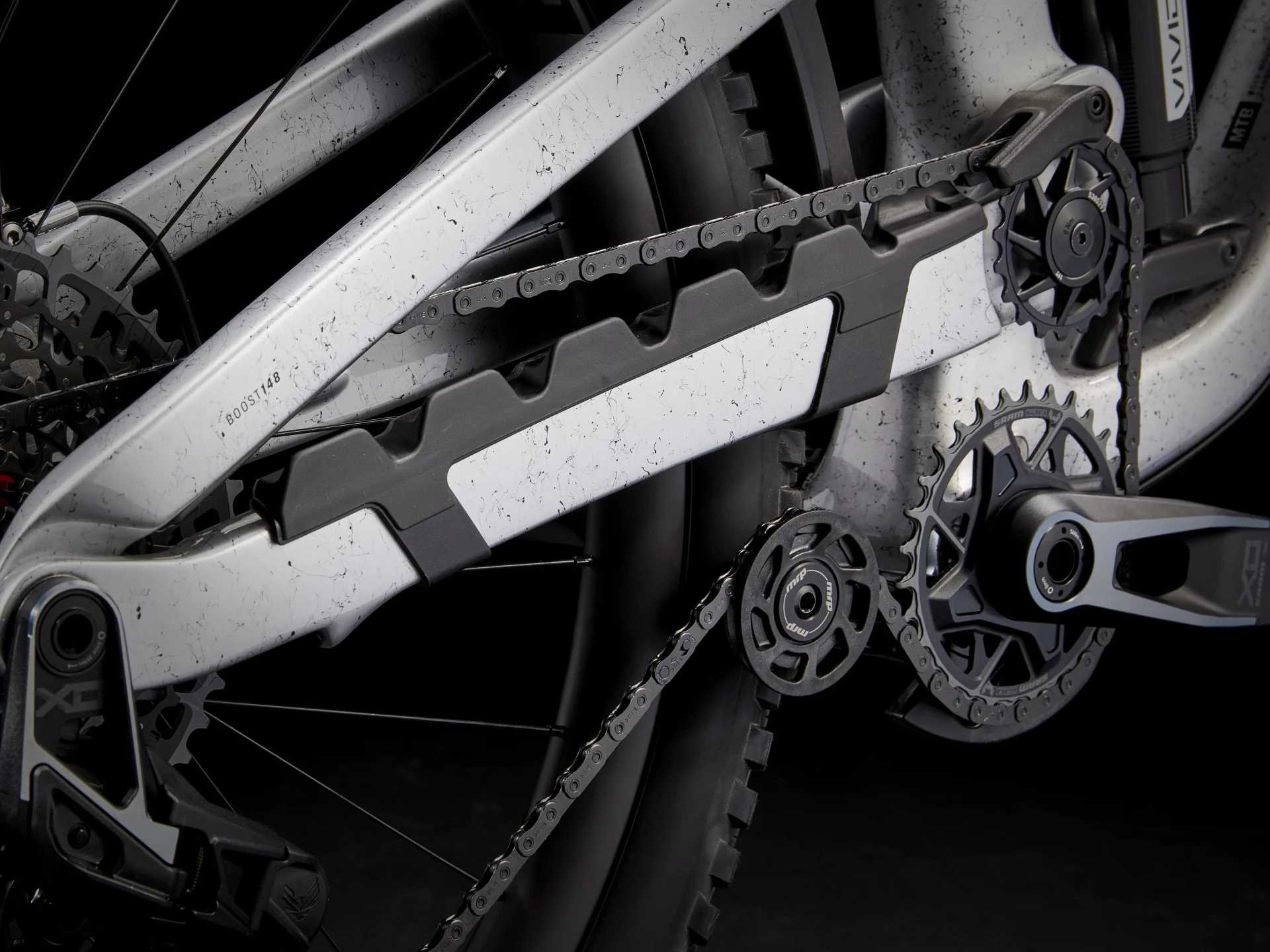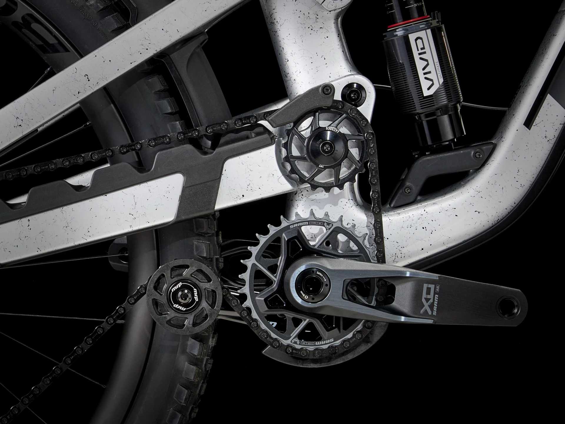 1. Zawieszenie z wysokim punktem obrotu daje Ci niesamowitą kontrolę na przeraźliwie stromych zjazdach, podczas gdy precyzyjnie dopasowany anti-squat i kółka przerzutki oversized niesamowicie zwiększają wydajność pedałowania