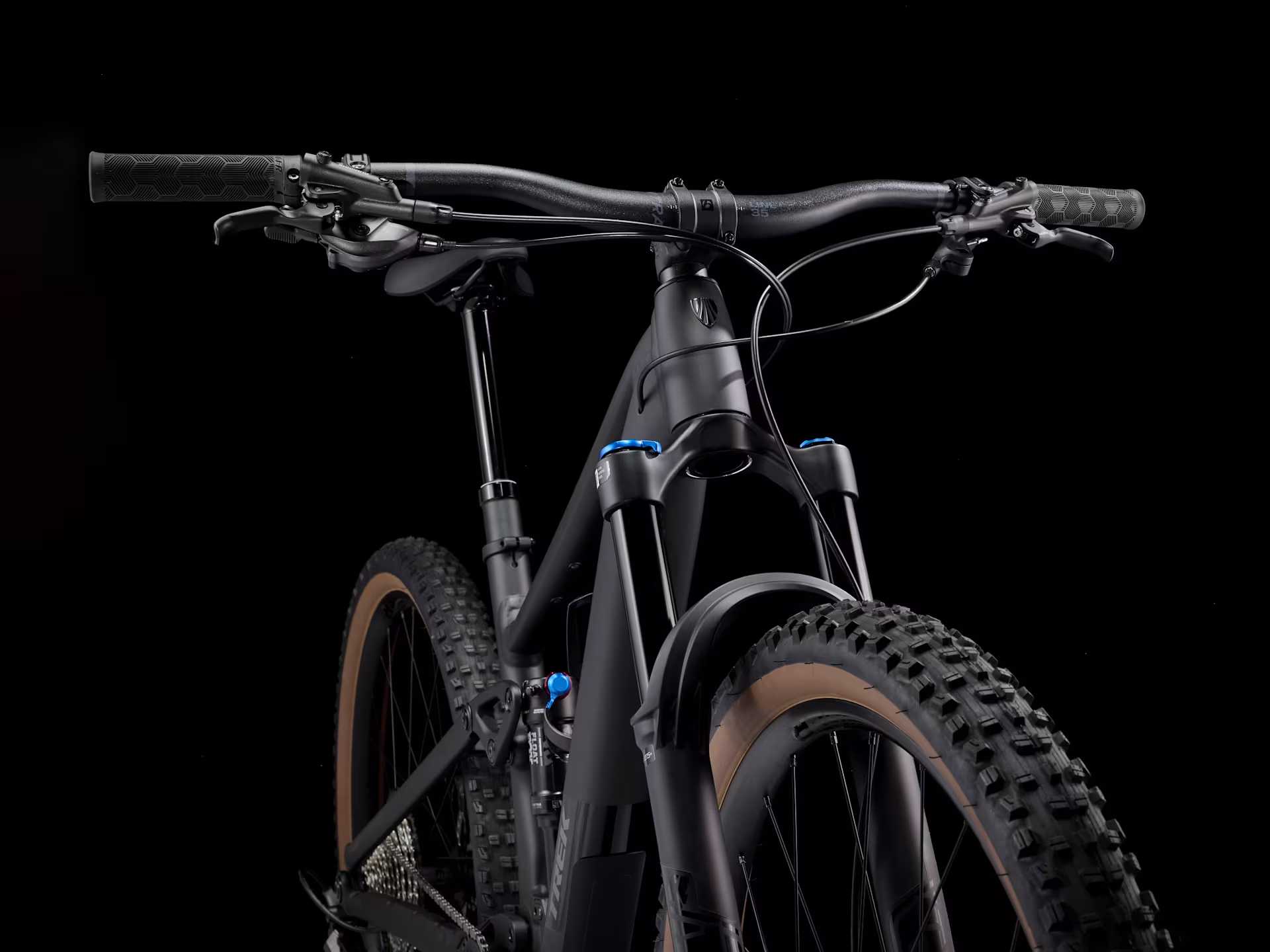 Za kontrolę na nierównościach odpowiada nowoczesne zawieszenie o skoku 130 mm z przodu i 120 mm z tyłu, umożliwiające pewną jazdę po korzeniach, kamieniach i stromych sekcjach bez utraty wydajności. Przedni amortyzator Fox Rhythm 34 zwiększa przyczepność i stabilność, zapewniając precyzyjne tłumienie w zróżnicowanym terenie.