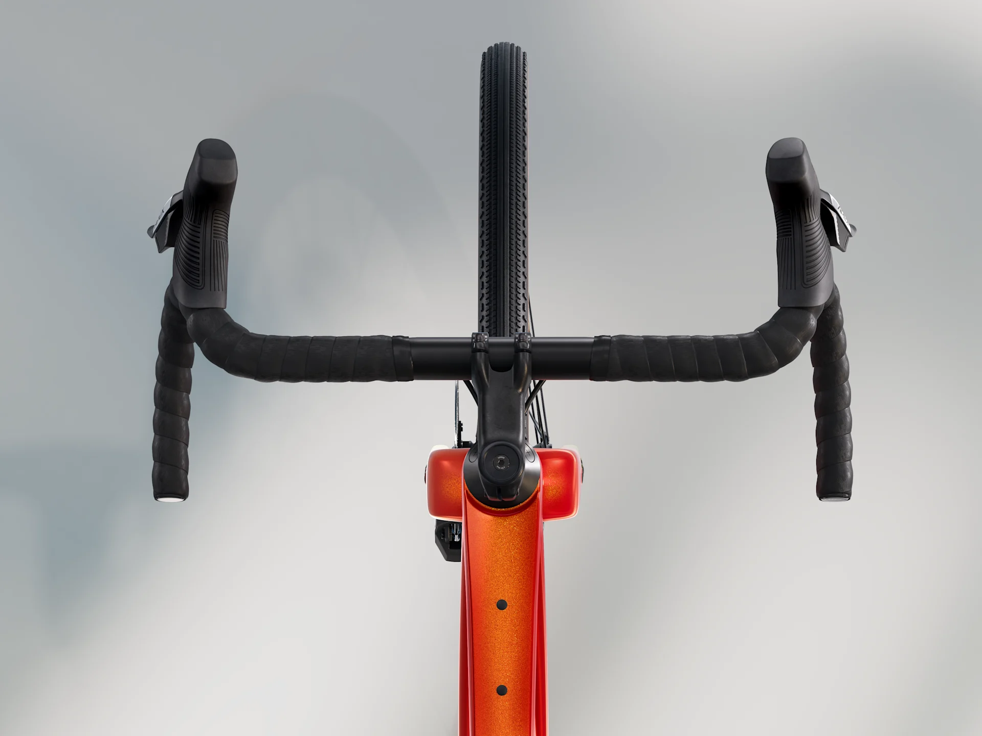 Rama z włókna węglowego OCLV Serii 500 z widelcem z włókna węglowego, schowek w rurze dolnej, prześwit na opony 50 mm (zgodnie z pomiarem). Całkowicie bezprzewodowy napęd 1x12 SRAM Apex XPLR AXS, hydrauliczne hamulce tarczowe, sztyca podsiodłowa z włókna węglowego oraz opony Bontrager Paradigm SL gotowe na montaż bezdętkowy z oponami 42 mm.