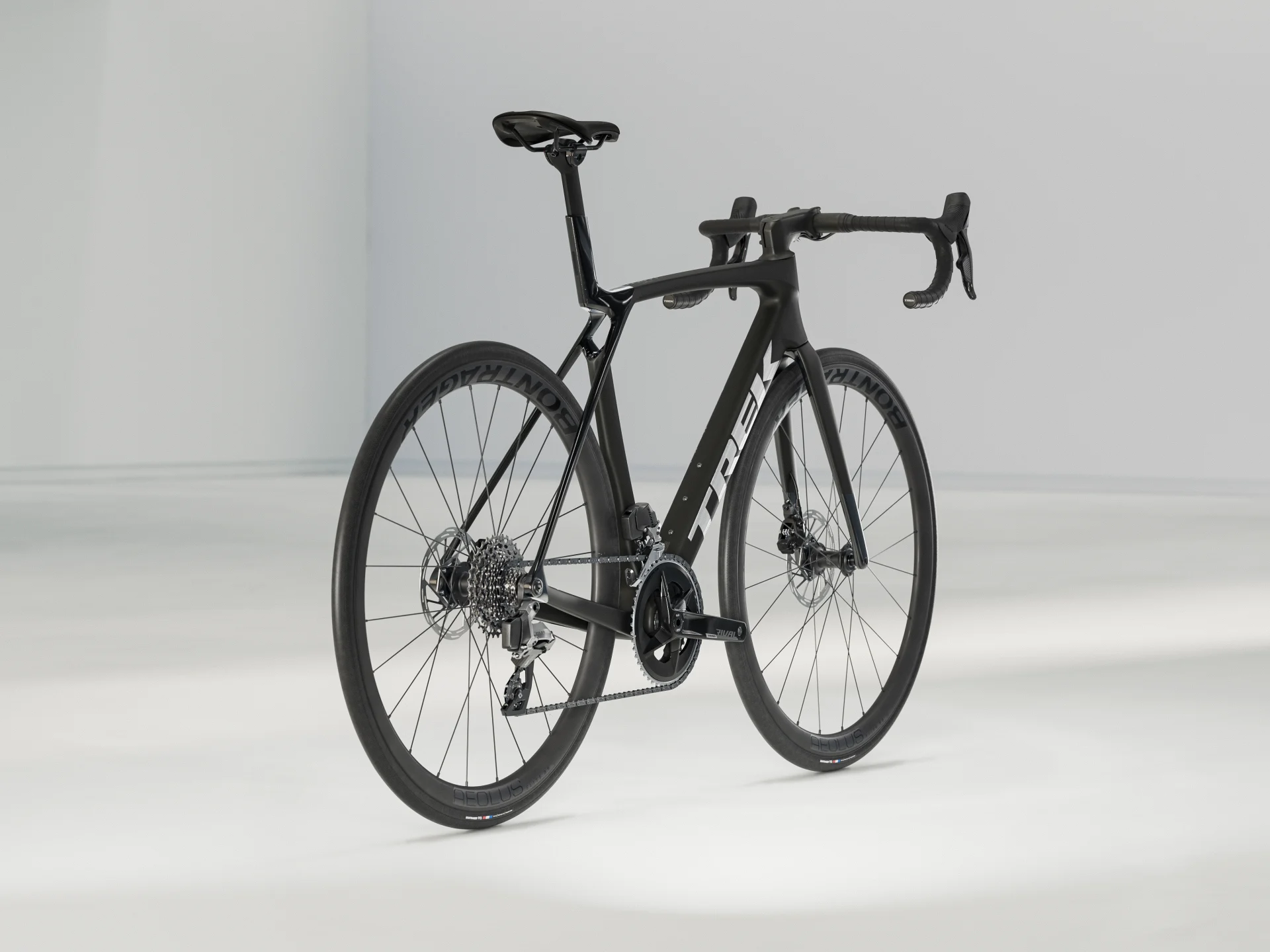 Madone SL 6 AXS Gen 8 to lekki i aerodynamiczny rower szosowy, z którym technologie elit peletonu trafiają do bardziej przystępnych segmentów. Zapewnia korzyści aero droższego Madone SLR Gen 8, ale z tańszym włóknem węglowym OCLV 500 oraz dwuczęściowym kokpitem z ukrytym prowadzeniem przewodów i linek. Jego gotowa na wyścigi geometria gwarantuje zwinność podczas sprintów, a jednocześnie kontrolę na szybkich zjazdach. W celu pełnej możliwości dostosowania płynnej zmiany biegów wyposażony jest w sterowaną elektronicznie grupę SRAM Rival AXS, a całość dopełniają koła z włókna węglowego łączące wydajność i lekką masę.