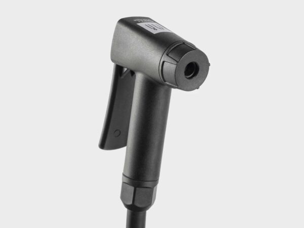 Dwukomorowa konstrukcja z ustawieniem ciśnienia umożliwia wydajną pracę w charakterze tradycyjnej pompki podłogowej.